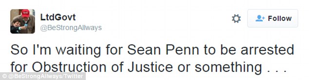 Другой человек написал: "Ну что я жду когда Шона Пенна арестуют за препятствование правосудию или что-то в этом роде..."