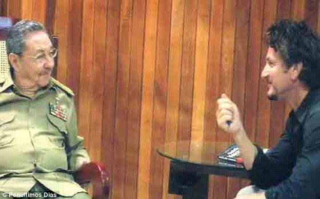 На этой фотографии Шон Пенн проводит интервью с кубинским Раулем Кастро в 2008 году