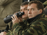 Российский президент Дмитрий Медведев в стратегическом учебном центре, 2008 г.
