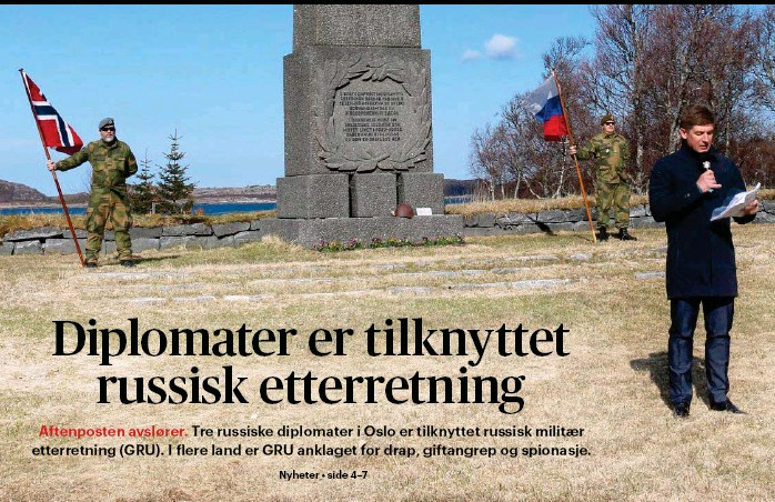 В среду, трое дипломатов российского посольства в Осло были идентифицированы газетой Aftenposten как имеющие связи с российским агентством военной разведки, известным как ГРУ