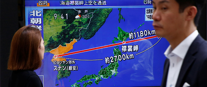 Запущенная Северной Кореей ракета пролетела в воздушном пространстве Японии и упала в океан