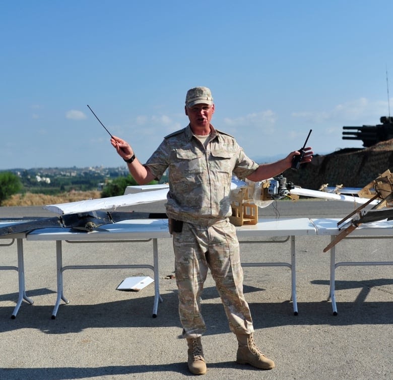 Генерал-майор Игорь Конашенков обращается к корреспондентам иностранных СМИ на российской авиабазе близ Латакии, Сирия. (Паскаль Дюмон / CBC)читали: 4030, обсуждали:
