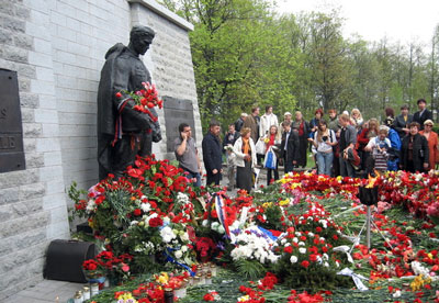 В нынешнем году будут отмечаться 65-летие освобождения от фашизма нескольких европейских стран. Первый из таких юбилеев пришелся на 13 июля – в этот день в 1944 году был освобожден Вильнюс. В сентябре и октябре наступит черед Таллина и Риги. Однако в новых «восточноевропейских демократиях» эти даты отвечают весьма своеобразно – провокациями и скандалами. В этой ситуации уместно подвести некий итог проводимой там деятельности по переписыванию истории и сопровождающему ее безудержному вандализму. После 1991 года в восточноевропейских и прибалтийских странах обсуждался вопрос о переносе воинских мемориалов. В последнее десятилетие многие из этих памятников превратились в объекты политических провокаций, а иногда и преднамеренного кощунства. Что, где и как это происходило в последние годы?Потери безвозвратны, но живут в человеческой памяти Людские потери СССР – по разным данным от 6,8 млн. военнослужащих убитыми и 4,4 млн. попавшими в плен и пропавшими без вести до 6,4 млн. погибшими и 2,5 млн. военнопленными. Общие демографические потери (включающие погибшее мирное население) – 26,6 млн. человек. После войны в Европе было создано около 4 тысяч воинских мемориалов, в которых захоронено более 2,5 млн. солдат и офицеров Красной Армии, погибших в боях в годы второй мировой войны. Большинство памятников установлено в странах Центральной и Восточной Европы. Но памятники советскому солдату есть также в Нидерландах, в Норвегии, Финляндии, Австрии, Франции. Каждый год ветераны этой войны приходят к памятникам защитников, возлагают им цветы и вспоминают тяжелые фронтовые годы. После развала СССР и бархатных революции в восточноевропейских и прибалтийских стран обсуждался вопрос о переносе этих мемориалов. В большинстве центрально-европейских столиц памятники советским солдатам стоят на кладбищах, где захоронены воины, но в некоторых городах, например, в Будапеште или в Вене, они установлены на городских площадях. В последнее десятилетие многие из этих памятников превратились в объекты политических провокаций, а иногда и преднамеренного кощунства. Ещё живы, пусть и немногие, солдаты Великой Отечественной. И прямо у них на глазах происходит пляска на костях героев, павших за свободу и независимость за свободу нашей Родины и народов Европы: сначала «переносились» и попросту ликвидировались памятники нашим воинам, теперь – воздвигаются монументы главарям нацистской коалиции, причём прямо на месте совершенных преступлений. Конечно, памятники разрушают не во всех странах бывшего соцлагеря и бывших союзных республиках. Что же, где и как это происходило в последние годы? Эстония: «Здесь стонет земля» Памятник Воину-освободителю Таллина от немецко-фашистких захватчиков На первом этапе независимости Эстония разбиралась со своими памятниками тихо и без политических дебатов. Исчезновения советских монументов не замечали ни россияне, ни местные русскоязычные. Правда, на тот момент власти Эстонии проводили активную пропагандистскую работу, усмирявшую желавших повоевать за памятники. Все сносы и переносы маскировались благовидными предлогами. Вначале был погашен Вечный огонь у памятника Освободителям: власти аргументировали это необходимостью экономить газ. Затем городские власти организовали перезахоронение останков погибших солдат из 