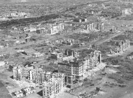 (IMG:http://battle.volgadmin.ru/front_foto/img/4992m.jpg) (IMG:http://battle.volgadmin.ru/front_foto/img/495m.jpg) (IMG:http://battle.volgadmin.ru/front_foto/img/27m.jpg) (IMG:http://battle.volgadmin.ru/front_foto/img/33m.jpg) (IMG:http://battle.volgadmin.ru/front_foto/img/37m.jpg) (IMG:http://battle.volgadmin.ru/front_foto/img/62m.jpg) Победа советских войск над немецко-фашистскими войсками под Сталинградом - одна из наиболее славных страниц летописи Великой Отечественной войны. 200 дней и ночей - с 17 июля 1942 года до 2 февраля 1943 года - продолжалась Сталинградская битва при непрерывно возрастающем напряжении сил обеих сторон. В течение первых четырех месяцев шли упорные оборонительные бои, сначала в большой излучине Дона, а затем на подступах к Сталинграду и в самом городе. За этот период советские войска измотали рвавшуюся к Волге немецко-фашистскую группировку и вынудили ее перейти к обороне. В последующие два с половиной месяца Красная Армия, перейдя в контрнаступление, разгромила войска противника северо-западнее и южнее Сталинграда, окружила и ликвидировала 300-тысячную группировку немецко-фашистских войск. Сталинградская битва – решающее сражение всей Второй мировой войны, в котором советские войска одержали крупнейшую победу. Эта битва ознаменовала начало коренного перелома в ходе Великой Отечественной войны и Второй мировой войны в целом. Закончилось победное наступление немецко-фашистских войск и началось их изгнание с территории Советского Союза. Сталинградская битва по продолжительности и ожесточенности боев, по количеству участвовавших людей и боевой техники превзошла на тот момент все сражения мировой истории. Она развернулась на огромной территории в 100 тысяч квадратных километров. На отдельных этапах с обеих сторон в ней участвовало свыше 2 миллионов человек, до 2 тысяч танков, более 2 тысяч самолетов, до 26 тысяч орудий. По результатам эта битва также превзошла все предшествовавшие. Под Сталинградом советские войска разгромили пять армий: две немецкие, две румынские и одну итальянскую. Немецко-фашистские войска потеряли убитыми, ранеными, плененными более 800 тысяч солдат и офицеров, а также большое количество боевой техники, оружия и снаряжения. Сражение за Сталинград принято подразделять на два неразрывно связанных периода: оборонительный (с 17 июля по 18 ноября 1942 года) и наступательный (с 19 ноября 1942 года по 2 февраля 1943 года). Вместе с тем, в силу того, что Сталинградская битва – это целый комплекс оборонительных и наступательных операций, ее периоды в свою очередь необходимо рассматривать по этапам, каждый из которых – это либо одна законченная, либо даже несколько взаимосвязанных операций. События Второй мировой войны до Сталинградской битвы Планы сторон на лето 1942 года Положение сторон на южном крыле советско-германского фронта к середине лета 1942 года Начало сражения за Сталинград (17-22.07.1942) Начало боев на главной полосе обороны на дальних подступах к Сталинграду (23-30.07.1942) Завершающий период оборонительного сражения Красной Армии в большой излучине Дона (31.07-17.08.1942) Прорыв германских войск к Волге и оборонительные бои на ближних подступах к Сталинграду (19-31.08.1942) Боевые действия на внутреннем Сталинградском обводе и начало боев в черте города (1-26.09.1942) Бои на северных окраинах Сталинграда (27.09-08.10.1942) Завершение оборонительного этапа Сталинградской битвы (09.10-18.11.1942) Обстановка на советско-германском фронте в конце осени 1942 года и подготовка контрнас