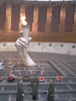Есть в Волгограде место, самым тесным образом связанное с событиями Второй Мировой войны, с Великой Сталинградской битвой - это прославленный Мамаев курган с "Историко-мемориальным комплексом "Героям Сталинградской битвы". Мамаев курган, господствующий над основной частью города и обозначавшийся на военно-топографических картах, как Высота-102,0 являлся главным звеном в общей системе обороны Сталинградского фронта. Именно он стал ключевой позицией в борьбе за волжские берега. Здесь в последние месяцы 1942 года проходили ожесточенные бои. Склоны кургана были перепаханы бомбами, снарядами, минами. Почва смешалась с осколками металла. Это место огромных людских потерь… Именно здесь, в районе Мамаева кургана, 2 февраля 1943 года закончилась Сталинградская битва. Название Мамаев Курган, как гласит легенда, связано с именем татарского военачальника Мамая. Идея сооружения в городе-герое величественного монумента, в память о великом сражении, возникла почти сразу после окончания битвы. Грандиозный масштаб и сложность композиции задуманного ансамбля потребовали больших сроков для его осуществления. Начато сооружение монумента в мае 1959 года, а окончено 15 октября 1967 года, когда памятник-ансамбль Героям Сталинградской битвы был торжественно открыт. Именно памятник-ансамбль, как высшая форма монументального искусства, позволил авторскому коллективу наиболее полно передать размах массового героизма, раскрыть смысл и значение Сталинградской битвы, многопланово и разносторонне, воплотив конкретные художественные образы в различных видах скульптуры, в ее синтезе с архитектурой и природой. "Мамаев курган" 10 мая 2009 года Первая лестница на пути к вершине кургана. Эта надпись видна с дороги, проходящей перед Мамаевым курганом. (IMG:http://img-fotki.yandex.ru/get/3703/marsadykova.0/0_1bba8_1f303ceb_L.jpg) Флаги в честь Дня Победы. (IMG:http://img-fotki.yandex.ru/get/3702/marsadykova.0/0_1bba9_da4d4109_L.jpg) Монументы Мамаева кургана и маленький житель Волгограда. (IMG:http://img-fotki.yandex.ru/get/26/marsadykova.0/0_1bbaa_65f0d6cf_L.jpg) «Стоять насмерть» (IMG:http://img-fotki.yandex.ru/get/3704/marsadykova.0/0_1bbad_4d9c6926_L.jpg) Стены-руины (IMG:http://img-fotki.yandex.ru/get/3009/marsadykova.0/0_1bbae_b9c2f0b4_L.jpg) Сообщение отредактировал Rebel_tm - 19.8.2009, 12:42 |