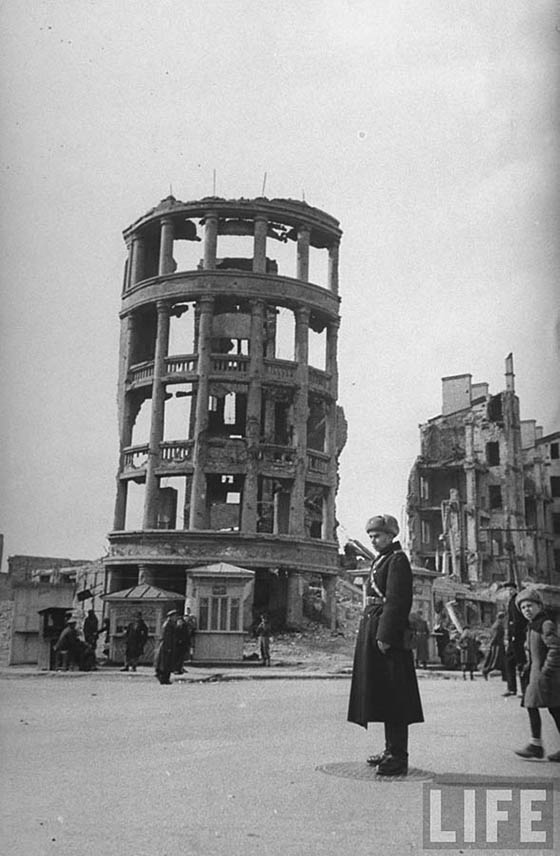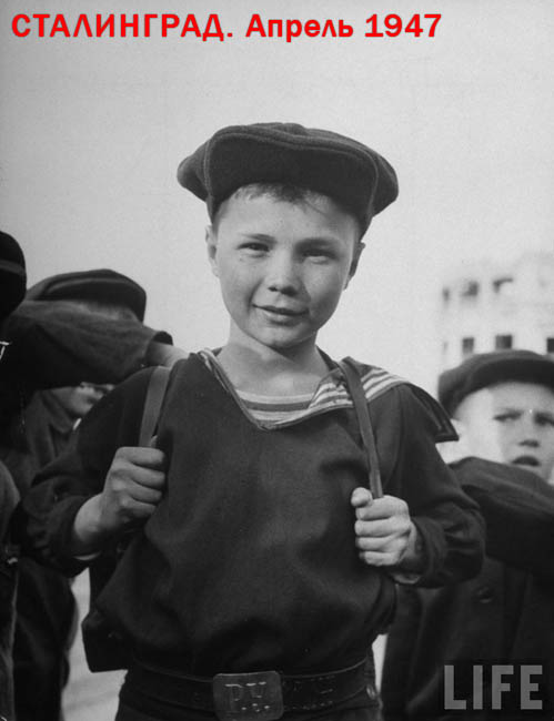Сегодня публикую 38 карточек из фотоархива Life - а именно, из поездки группы американских корреспондентов в ещё разрушенный послевоенный Сталинград в апреле 1947 года. "Холодная война" в полную силу ещё не вступила, это случится годом-полутора позже - с фактическим разделением Германии и берлинским кризисом, и поэтому климат отношений между военными союзниками - США и СССР - пока позволял такие поездки. Американцы, дети иной цивилизации по восприятию окружающего, "ловили" наиболее пикантные, необычные моменты - типа верблюда, запряженного в телегу или девушек в ватниках за станком на тракторном заводе. "Студебеккеры" с ЗИС-ами на улицах им в принципе были привычны и понятны, поэтому они в объектив не попадали. Некоторые снимки частично постановочны - скажем, дети, декламирующие стихи в детсаду, и оглядывающиеся на незнакомых иностранных "дяденек". Однако много и искренних снимков - пойманных моментов, людей, руин зданий. Есть очень пронзительные снимки: можно ясно себе представить, насколько сильно был вбит в каменный век "цивилизованными германцами" белокаменный довоенный Сталинград, город-красавец на берегу Волги. Насколько сильно был отброшен назад Советский Союз этой страшной войной, какие огромные жертвы он принёс на алтарь Победы. Тут много разного: сталинградцы в землянках и пленные немцы, работающие заводы и руины города, питомцы "ремеслухи" и военные в сталинградском театре. Смотрите, друзиа, и проникайтесь. Это именно наша история, не чья-нибудь иная. Она не гламурная, она тяжёлая и сложная; зато за неё не приходится краснеть и всячески прятать её в дальние углы, как французам свой позорный сороковой год. Наши деды и прадеды справились. И с войной, и с разрухой, а вскоре подняли страну до спутника и Юрия Гагарина. 1.Питомец "ремеслухи". На ремне написано Р.У. - ремесленное училище. (IMG:http://perevodika.ru/upload/iblock/655/image001_1.jpg) 6. Остатки довоенного монументального здания недалеко от руин вокзала (см. кадр 3). Справа, наверное, регулировщик движения. (IMG:http://perevodika.ru/upload/iblock/c12/image006_1.jpg) Остальное здесь. Сообщение отредактировал Rebel_tm - 16.1.2010, 9:41 |