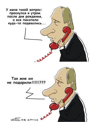 (часть картинок "озвучена" камрадами ко дню рождения ВВП, кажется на триниурл, откуда я их доблестно и потягала) ![]() ![]() ![]() ![]() ![]() ![]() (фото журнала Тime, фотографа не знаю) ![]() ![]() (интерпретация знаменитой фразы "доктора пришлём") ![]() (картинка времён Газомора 2009) ![]() (картинка времён зимы 2009 - девальвация рубля) ![]() Сообщение отредактировал Марфа Парамоновна - 27.8.2010, 14:08 |