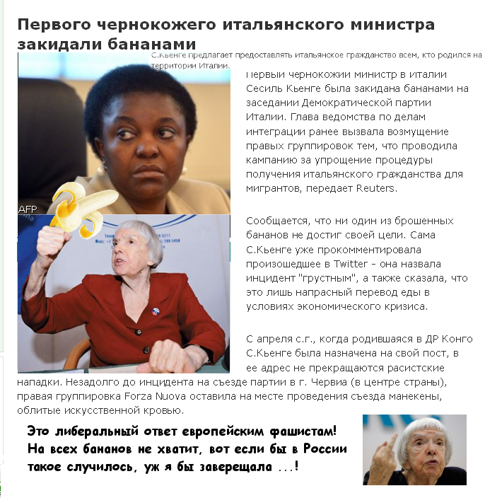 Вот упразднили поздравление Мерри Кристмас - потеряли кусок религии Вот низзя терь женщину называть женщиной - потеряли полнаселения и воспроизведенческую функцию вида Ну не м...ки ли?! Итого - РФ - самая толерантная страна: - у нас есть негры - мы знаем и признаём существование других рас на нашей планете (и вполне мирно сопроживаем с ними) - у нас и Мери Кристмас и Христос Воскресе и УразаБайрам - мы знаем и признаём существование других религий (и вполне мирно сопроживаем все вместе) - у нас есть Женщины, которым можно не боясь судебного преследования придержать дверь и сделать комплимент (тут я не буду ничего говорить).... - у нас есть много национальностей (включая эрзю и мерю) - и мы не замазываем различия между ними, а рассказываем об их обычаях, быте, происхождении и истории - и тем сохраняем их и себя (вот такой крик души ...) |