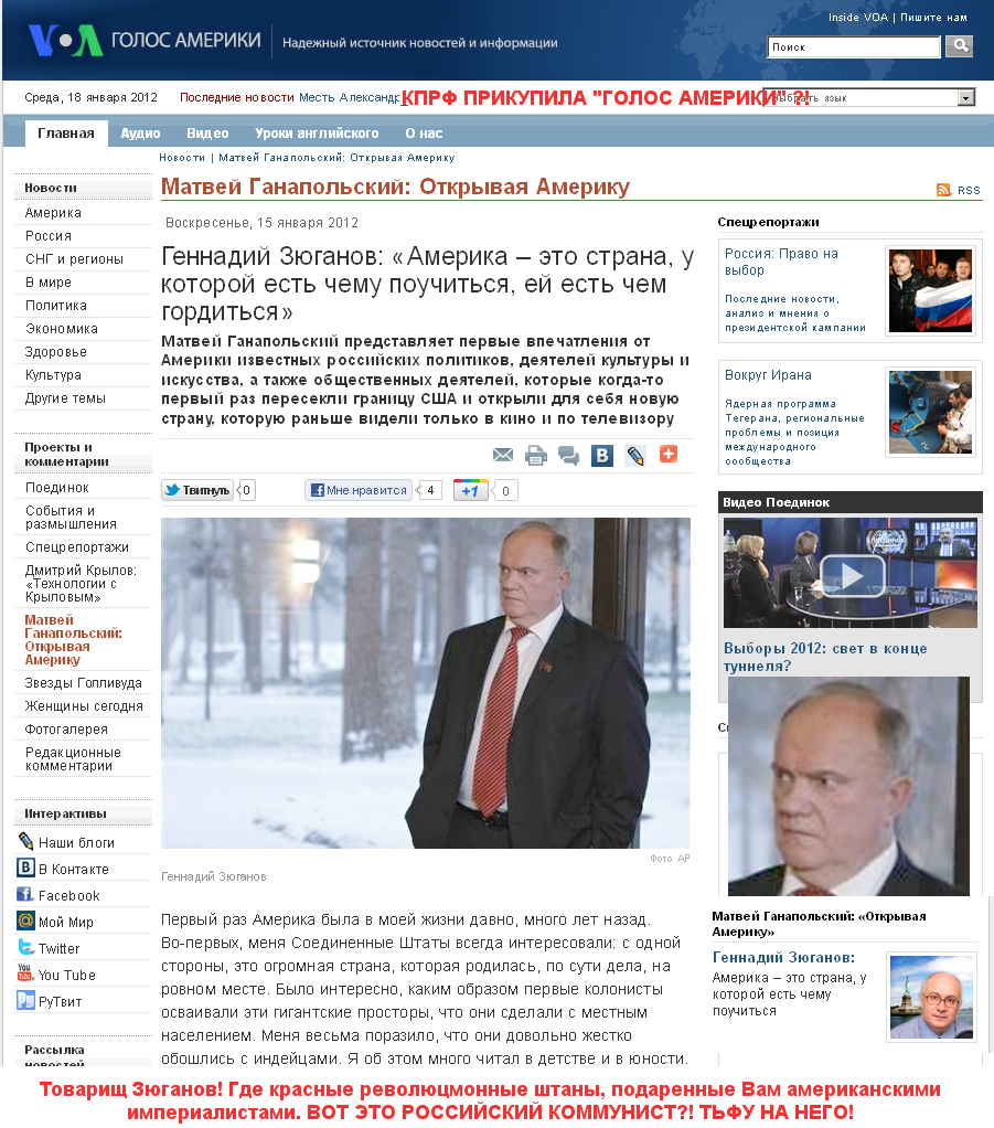 Слышал, что на Переводике сильны прокоммунистические настроения, вот представляю на суд разбор 10 минут интервью Зюганова на Эхе Москвы из неполных 30 минут..