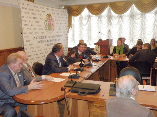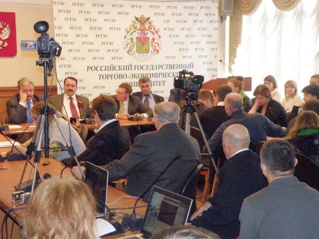 На таких условиях, по словам сирийского посла, Запад готов отказаться от санкций в отношении страны … Вчера, 6 октября, по приглашению ректора Российского государственного торгово-экономического университета, председателя Российского комитета солидарности с народами Ливии и Сирии Сергея Бабурина в университете выступил посол Сирийской Арабской Республики в России Риад Мухаммед Хаддад, сообщает пресс-служба комитета. В круглом столе «Ситуация в Сирии: тенденции и прогнозы» также приняли участие преподаватели и студенты РГТЭУ, ученые-востоковеды, представители Российского комитета солидарности с народами Ливии и Сирии, МОО «ВЕЧЕ» и других общественных организаций, представители сирийской диаспоры в России, в том числе учредители Сирийского комитета национального единства, блогеры, пишущие на политические темы, журналисты. Круглый стол проходил в формате телемоста с 15 городами России, что позволило студентам и преподавателям филиалов университета принять участие в обсуждении. Посол Сирии заявил, что руководство страны, которую он представляет, продолжит курс на реформы и будет последовательно выступать против любого внешнего вмешательства во внутренние дела государства. «Такое вмешательство направлено не на сохранение целостности Сирии, а на то, чтобы решить проблемы в стране вооруженным путем», - подчеркнул он. По словам посла, от Сирии в обмен на отмену санкций требуют отказаться от поддержки арабского сопротивления и народа Палестины. Риад Хаддад также отметил, что официальный представитель США открыто заявил, что им нужны в Сирии не реформы, а смена власти. Профессор РГТЭУ Марат Мусин задал вопрос о том, что делается в Сирии для противодействия информационной войне против страны. По словам посла, против Сирии действительно ведется война, и на 80% эта война ведется на информационном поле. Но Сирия не может в полной мере противостоять этой мощной мировой пропагандистской машине. Скажем, в Джизр-аш Шугуре были найдены два массовых захоронения людей, убитых экстремистами. 80 расчлененных тел. Сирийская сторона пригласила всех послов, журналистов ведущих мировых СМИ поехать туда и увидеть все своими глазами. Некоторые отказались. Но и те, кто приехал, а их было немало, не написали об этом ни строчки. По словам Риада Хаддада, в ходе этой поездки он попросил прокомментировать увиденное посла США в Сирии, но тот категорически отказался от комментариев. Поэтому все, что может сделать сирийское руководство, это используем все свои, достаточно скромные, возможности, распространять правдивые материалы о ситуации в стране. И, конечно, сирийцам нужна поддержка от российских журналистов и блогеров, подчеркнул посол. Сейчас в Сирию приглашены представители 12 ведущих информационных агентств. Посол также пообещал передать в Российский комитет солидарности с народами Ливии и Сирии видеоматериалы и документы, рассказывающие о войне против Сирии. Послу Сирийской Арабской республики также были заданы вопросы по ситуации в Ливии. По его словам, у Сирии есть политические принципы, один из них невмешательство в дела других государств. После начала агрессии против Ливии все увидели страдания народа, жертвы и разрушения. Ливийский урок показывает, что никто, включая НАТО, не может насильно принести демократию в отдельно взятую стра