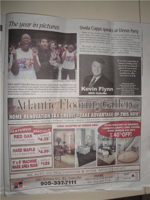 Слева вверху – рубрика «Год в фотографиях» - На инаугурации Обамы; Справа вверху – анонс будущей встречи бывшего министра депутата Парламента Шейлы Коппс в поддержку женских прав.