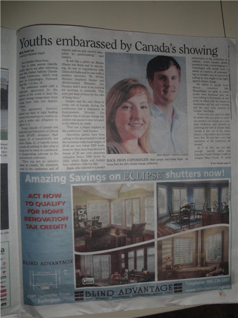 Вверху – статья об участии молодых канадцев (в том числе оквильцев) в конференции ООН по изменению климата.