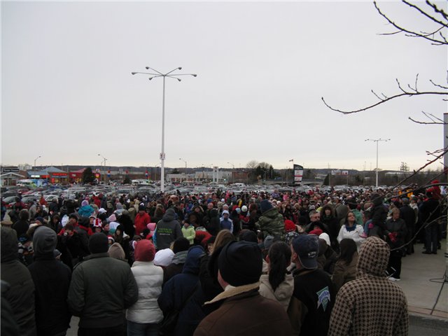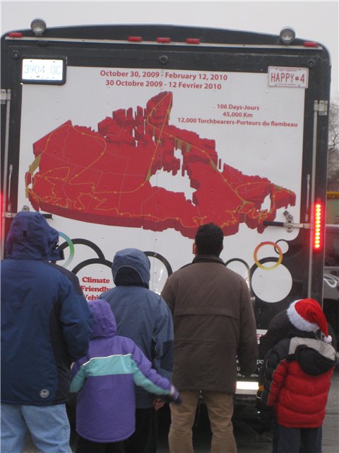 В феврале в Ванкувере начнутся Зимние Олимпийские Игры. Сейчас Олимпийский Огонь путешествует по всей Канаде. Был он и в Оквиле, но т.к. суббота - мой рабочий день, то я это событие пропустил. 19 декабря Огонь был в соседнем городе - Бёрлингтоне. Одна из остановок была на огромной площади перед торговым центром (Burlington Mall). В этом центре работает моя хорошая знакомая, замечательный человек Kim LaRonde. Она и организовывала эту остановку, встречу Огня, небольшой концерт и т.д. Она сделала несколько снимков, а я, в свою очередь, выпросил их для публикации здесь.