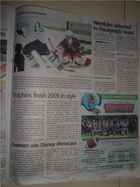 Спортивные страницы: на первой фотографии – статья о хоккеисте Робе Хайси, который стремится попасть в НХЛ и его фотография; на второй , третьей и четвертой – короткие заметки о школьниках- спортсменах – хоккеистах, пловцах, футболистах, в том числе о девичьей хоккейной команде (на последнем фото).
